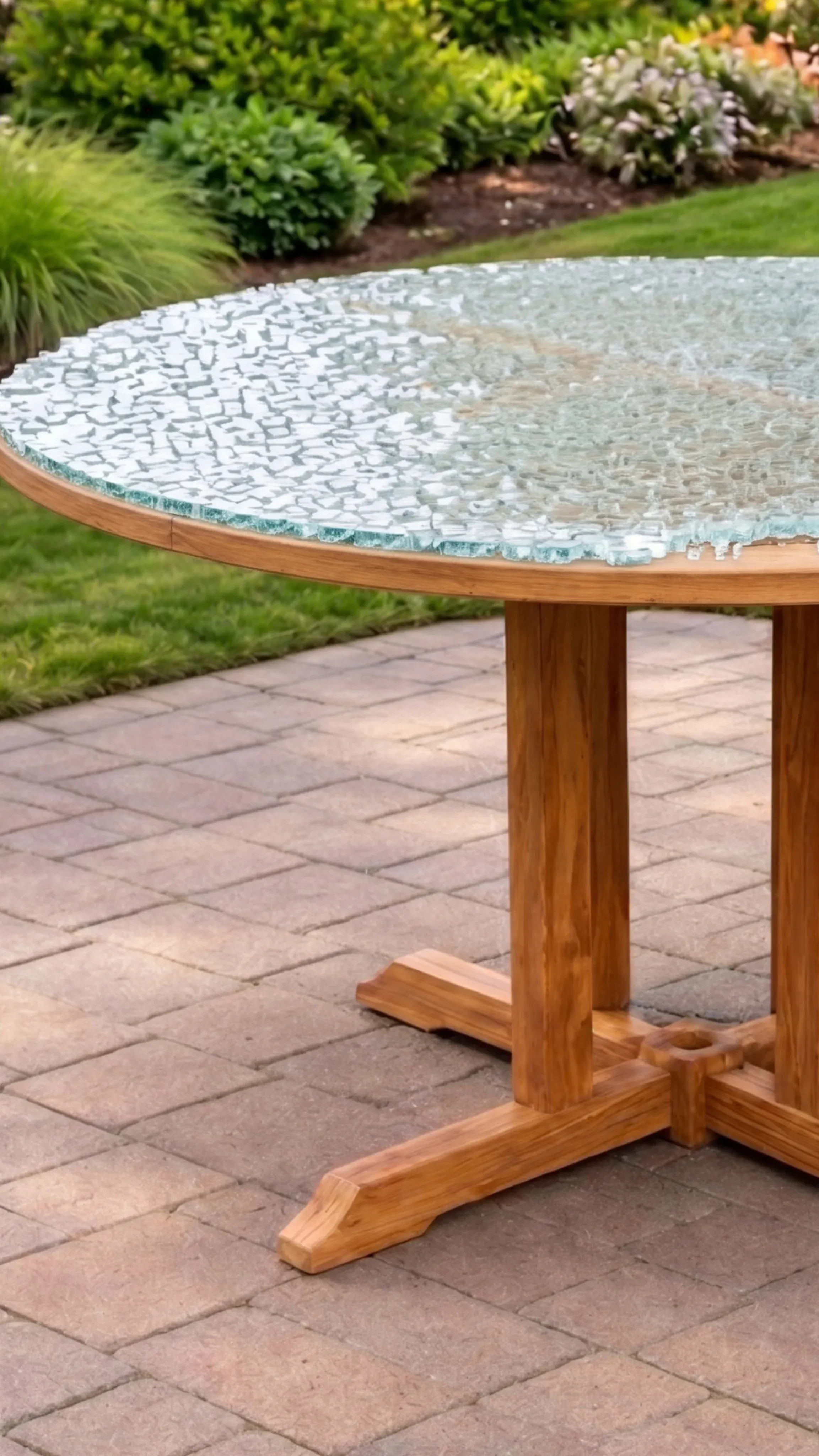 Kaputtes Glas im Garten. Oder fertiger Tisch auf der Terrasse.