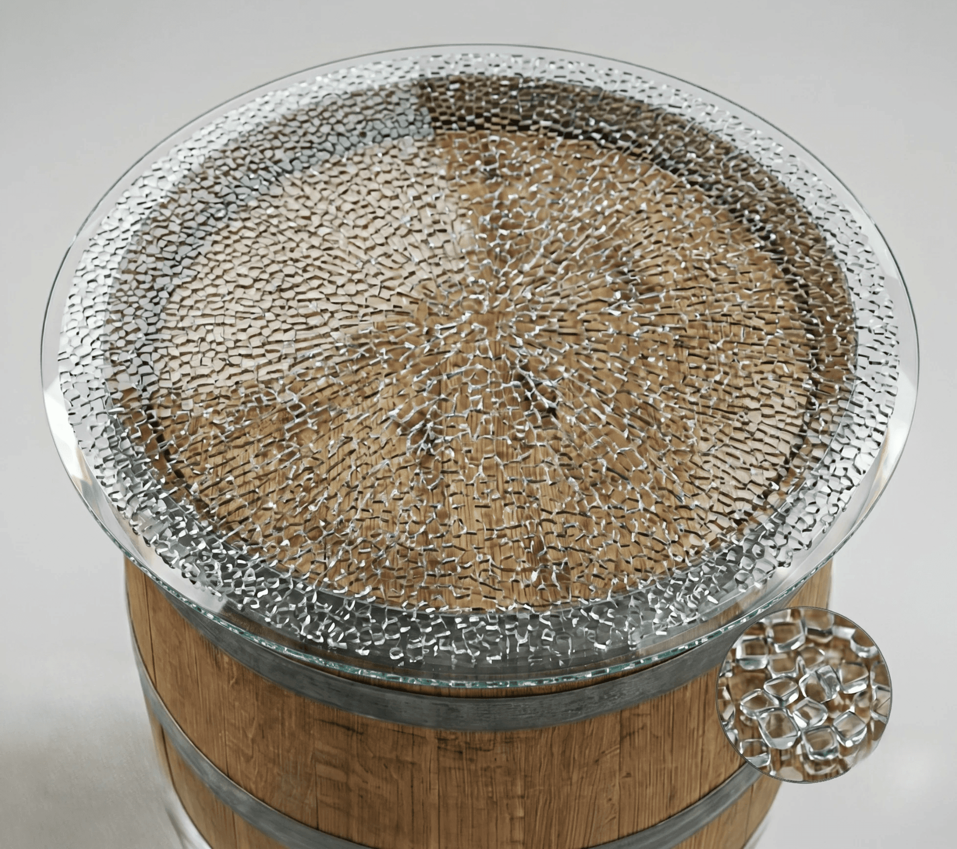 Weinfass, Bierfass, Holzfass, Eichenfass, Barrique. Alle haben eine runde Oberkante. Alle brauchen dieselbe Lösung: eine runde ESG-Glasplatte in der passenden Größe.