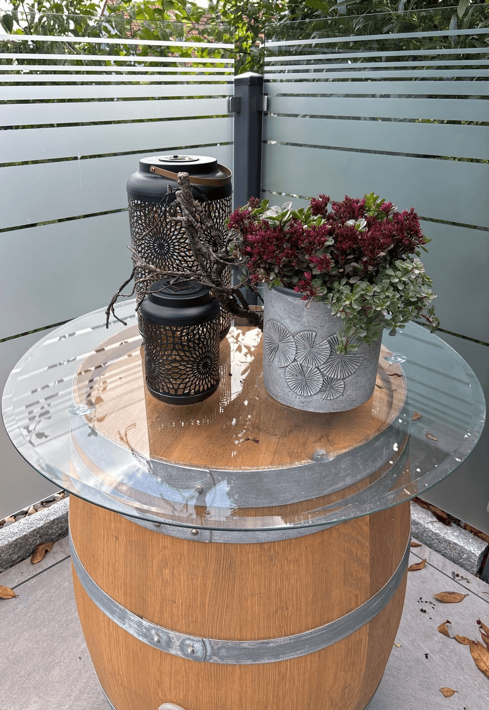 Ein Fass ist kein Tisch. Mit Glasplatte wird es einer.