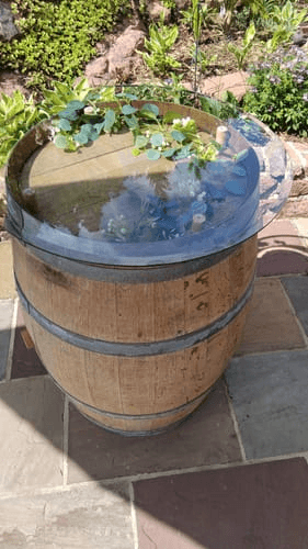 30 Sekunden. Ein echtes Fass, eine echte Glasplatte, ein echter Garten.